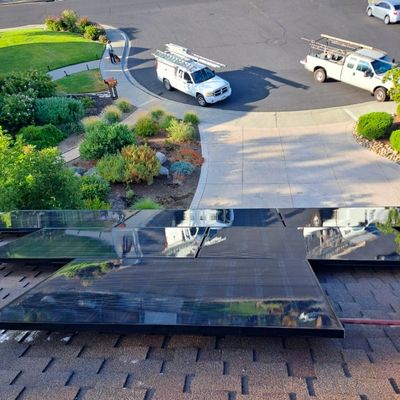 Solar panels are designed to capture sunlight efficiently, but dirt, dust, pollen, and bird droppings can accumulate on the surface and significantly reduce their performance. Our professional solar panel cleaning service helps restore maximum energy production by safely removing this buildup with specialized tools . We use non-abrasive brushes to gently clean the panels without leaving spots or damaging the surface. This method ensures a thorough, streak-free finish while protecting the integrity of your solar system. Regular cleaning not only improves efficiency and energy output but also helps protect your investment by maintaining the panels in optimal condition for long-term performance.